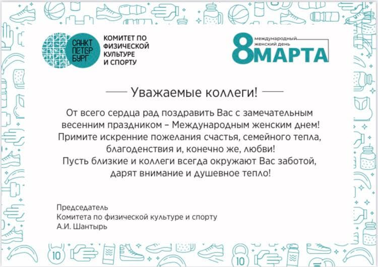 Поздравление от Комитета по физической культуре и спорту с 8 марта