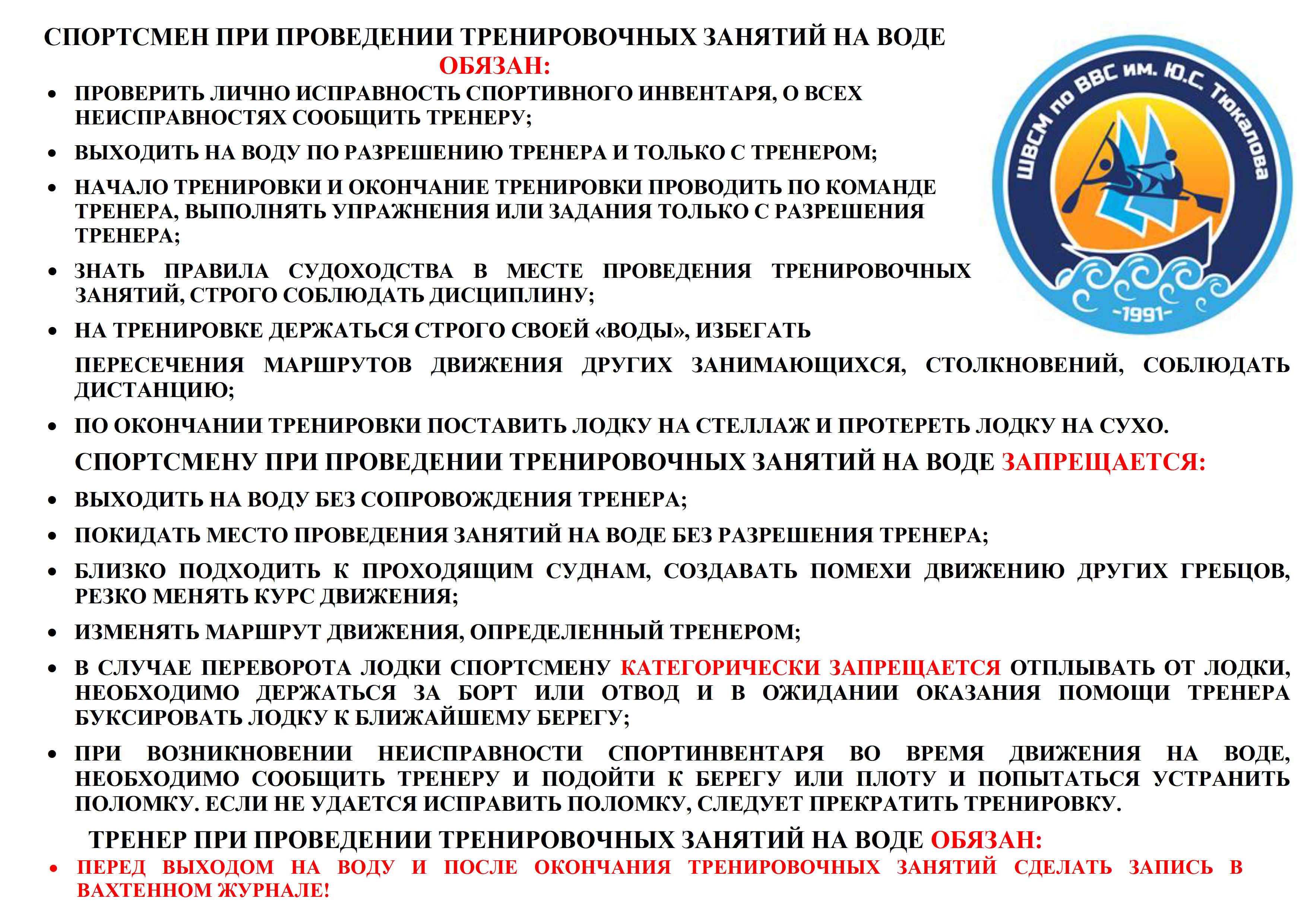 Сегодня открывается выход на воду для спортсменов групп: ВСМ, ССМ, ТЭ-3-5 в учебных лодках для академиков с тренером на руле; спортсменам отделения гребля на байдарках и каноэ, гребному слалому