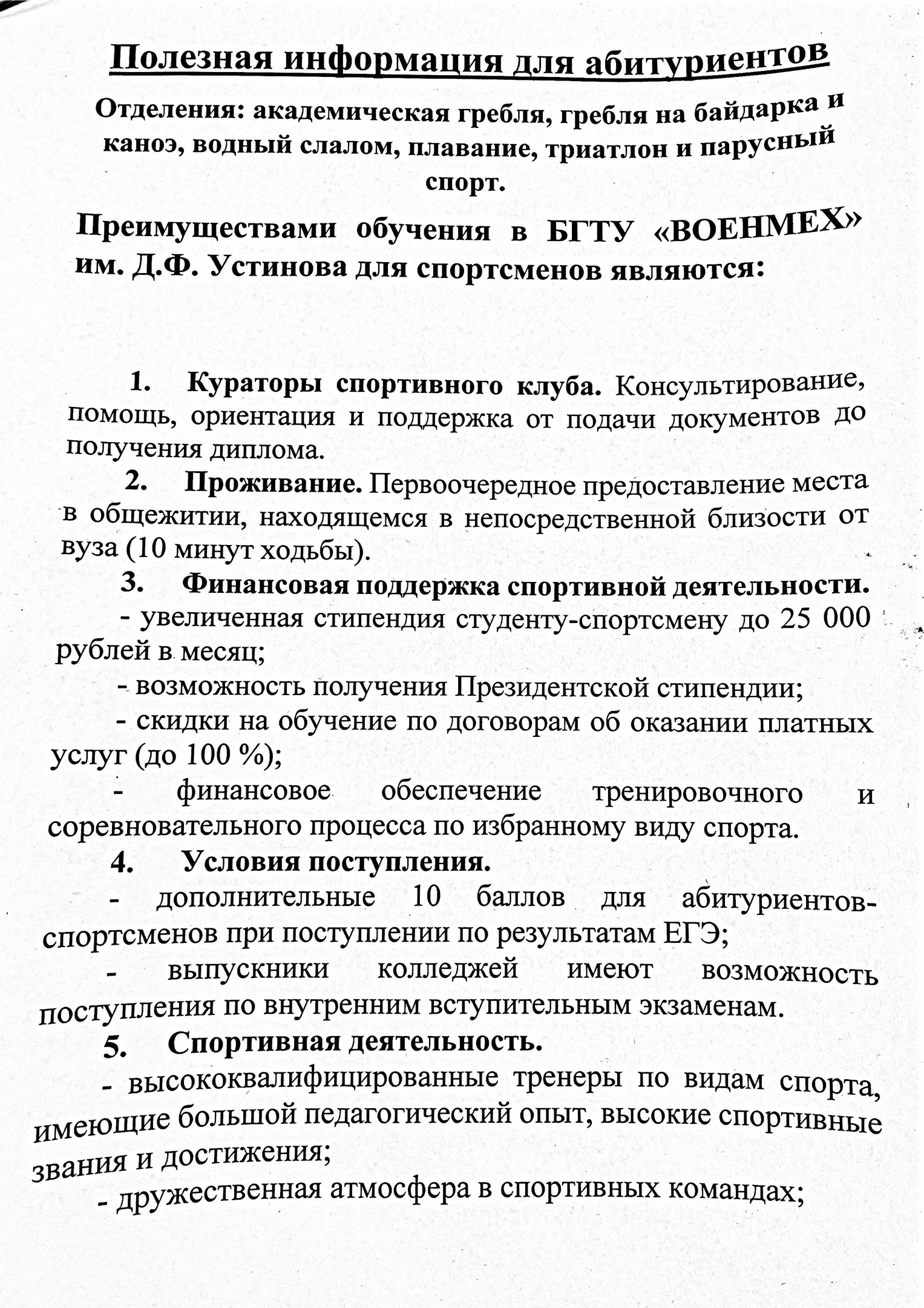 Информация для абитуриентов желающих поступить в ВОЕНМЕХ